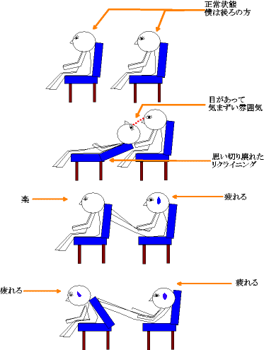 それは、ポカラからカトマンズに行くバスの中での出来事。このバスは壱の バスと違い観光客を相手にしているバスらしく、ネパールにしてはとても奇麗でした。 ポカラからカトマンズまで8時間ほど。これは快適な時間が過ごせそうだ と思った僕が甘かったのです。出発してから10分ほどして前のおっちゃんが おっちゃん:「リクライニングを倒していい?」 と聞くので ぼく:「いいよ」 と答えました。これが過酷な8時間への号砲となってしまいました。 その訳を下の絵に描いて見ました。 ![]() 説明すると、 @では何て事はないバス内の風景だったのですが、 おっちゃんがイスを倒した瞬間、バコンと音がしました。 A次の瞬間おっちゃんの顔が僕の顔の前にあり 二人は何ともいえない空気の中しばしガンをくれあったのでした。 リクライニングが壊れたのであります。 最初は気まずそうな顔をしていたおっちゃんでした がその内当たり前のように寝だしたのでむかついてきたので B足で前のイスを持ち上げてやりました。するとおっちゃんは イスが直ったと勘違いして容赦なく全体重をかけてきたのです。 Cそれならと僕は足を全開に伸ばしました、するとイスがまた壊れ 倒れるはずのない前のほうにも倒れたのです。 こうした無益且無意味な攻防を8時間も続けた末に僕は全身の筋肉が固まり、 かなりの疲労感を覚え次の日、案の定、筋肉痛に悩まされたのでした。 このような場合意地を張らずに寝てしまうのが一番だと思ったのは、 2日後の早朝、モモ裏がつった時でした。 |