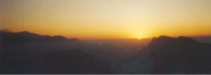 ![]() 先導中の犬 これは、上に書いたダンプスと言う 感動的な初日の出を見た場所での話です。 ここは、ふもとから2時間ぐらい登った山(丘)の頂上にある村落です。 ちゃんと村があるのですが、よくもこんなに山の上に作ったなーと、思える ぐらいの所でした。そこに行くまでに、僕たちはインドで出会った人たちと 5人で行ったのですが、皆ナメナメでサンダルだったり、毛布しか持って いなかったり、はら下していたり、とても山に登る感じではありません。 道も途中何回か迷いそうになったりしながら登っていったのでした。 そして元旦を迎え、日の出の後、 僕は宿の中庭に迷いこんできた犬と一時間ばかり戯れていました。 ちなみにこの宿は一泊40円でした。(20NRs) インドの犬と違い、色つやもよく人懐っこい犬でした。 途中からもう一匹迷いこんできて一緒に戯れていました。 昼過ぎに僕たちは山を降りることにしました。 するとさっきまで遊んでた犬が僕たちの前を まるで先導するかのように歩きだしたのです。 後ろを振り返りながら「こっちだよー」と言うように。 途中僕たちが休むと彼ら(犬)も一緒に休みをとっていました。 後から来た、犬は途中一時間ぐらいで帰ってしまいましたが、 最初に遊んでた方の犬は、ふもとまでずーっと道案内をしてくれた ので僕たちは迷うことなく帰ることが出来たのでした。 本当に賢くて役に立つ犬でした。 ふもとで別れる時チョット目頭が熱くなってしまいました。 |
