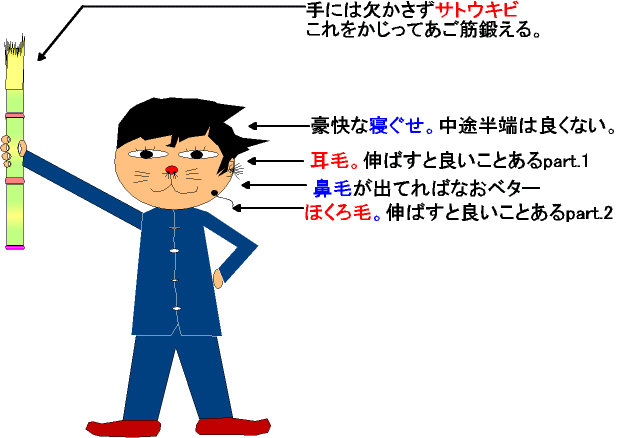 これは、当たっていたら世紀の大発見。ノーベル医学賞ものという話です。 僕は中国を旅する時にいつも不思議に思っていたことが2つあります。 ひとつは 中国人の女の子は結構かわいいのに、かっこいい男の人が極端に少ない。 と言うことです。しかしこれは大して重要な発見ではありません。 ふたつめの発見が重要です。それは 中国人にはハゲが少ないということです。 僕がみていた限りでは本当にハゲている人が少ないです。 はじめは、これは中国人(主に漢民族?)の血なのかなーと思っていました。 しかし、この前初めて香港に行った時にこの仮定は崩れさりました。 何故なら香港には、結構ハゲている人がいるのです。普通の欧米、日本並み にいるのです。不思議です。何故なのでしょうか? そこで、僕は中国と香港の男性の違いについて考察をしてみました。 そこから得た結果が今回の大発見?につながったのです。 それは、まず、 中国人は異常にサトウキビが好きだということです。 バスで移動する際や街でぶらついている時にかなり多くの人がサトウキビを かじっています。うそぉーってくらい長いやつをかじっている人もいます。 次に 中国人男性は結構、耳毛がボーンの人が多いということです。 何か伸ばすと良いとか切ると不吉だとかそういう言い伝えがあるのでしょうか? 結構若い人でも、耳毛を伸ばしている人がいます。 さらに 中国人男性は世界一?寝ぐせの豪快な人々ではないでしょうか。 とても一晩では、こさえられないような立派なものを 皆さん持っていらっしゃります。 最後に 中国人男性は結構、ほくろ毛を大切にしています。 ほくろから生えてくる毛を伸ばすと良いとか切ると不吉だとかそういう言い伝え があるのでしょうか?おじちゃんやおじいさんにいたっては、一つのほくろから モーモーと5、6本伸ばしている人もいます。 ![]() 標準的中国人男性 以上4つのことが香港人男性には僕のみる限り見受けられませんでした。 突然ですが 問1 人がハゲないためにはなにをすべきか解明せよ。 (出題:ノーベル医学賞受賞者検討委員会) 解 同じ民族内でサンプルを抽出し解明を試みた。 サンプル民族:漢民族 (中国人、香港人) 民族的に 中国人=香港人 式−1 ハゲ的に 中国人<香港人 式−2 その違いは サトウキビかじり度 中国人 > 香港人 式−3 :中国人の圧勝 寝ぐせの豪快度 中国人 > 香港人 式−4 :中国人世界一! 耳毛の育て具合 中国人 > 香港人 式−5 :中国人ナンバーワン! ほくろ毛の育てっぷり 中国人 > 香港人 式−6 :中国人オンリーワン!他に誰もやってない? 式3、4、5、6を 式1、2に代入してみると 以下の結果が得られた。 人はハゲないためには サトウキビをかじり、寝ぐせは直さず、育てる。さらに 耳毛とほくろ毛を大事に育んでいくこと。 が必要十分条件である。 ∴ 髪という髪には如何なるストレスも与えず、自由に伸ばし 糖分を十分にとり、同時にあごの筋肉を鍛えるべし。 (解答終) 如何ですか?説得力ありますか? 僕的には結構大発見だと思うのですが・・・。 だれか、寝ぐせが豪快で、耳毛とほくろ毛を伸ばしていて サトウキビをかじっていたのにハゲてる人を発見した方は 御一方を。ノーベル医学賞授賞を辞退いたします。 追伸 数学はさっぱりなので表現がおかしな部分が多々あると 思いますが大発見?に免じて見逃してやって下さい。 |