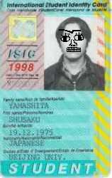 国際学生証。それは海外でも学割の効く素晴らしい学生証。しかしアジア では、あまり通用しない傾向あり。と言う代物です。 これは、カオサンでは有名なのですが、この通りに机を一つポンと 置いてその上に国際学生証を作っている人がいます。もちろんこん な所で作るのですから偽物です。自分で、名前、生年月日、国籍、 大学名を紙に記入し写真を渡し、15分ぐらいぶらぶらして戻って 来ると学生証が出来上がっているのです。自分で記入して、照合する 身分証明書は何もいらないということは、名前も年齢も大学名も全て 自分で作れるのです。この時は、僕は、ちょうど本物の国際学生証が 切れそうだったのでパスポートの書いてある名前と生年月日を記入し ました。しかし大学名を書く時に、何処か賢い大学を書こうと思いま した。オックスフォードやハーバードを書こうと思いましたが、その スペルが分からないくらいアホな僕だったのでした。東大は、なんか 書くのがしゃくだったし、と言うことで僕が選んだ大学は北京大でし た。Beijing Univ.です。この全く意味不明な選択が後に中国に赴い た時にかなり役に立つとは、この時は全く気付かなかったのですが。 他に作っている人の物を見たら、アントニオ猪木がいたり、ばかだ大学 なんてバカボンのお父さんの出身大学を書いている人もいました。 |