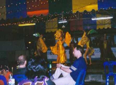 昼間に宣伝していたニューハーフショーがやっていました。オープンカフェ
