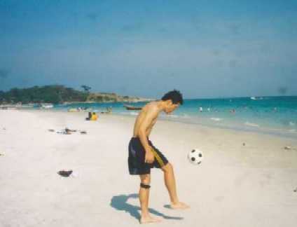 これはタイのサメット島の話です。昼間ビーチでサッカーをしていると