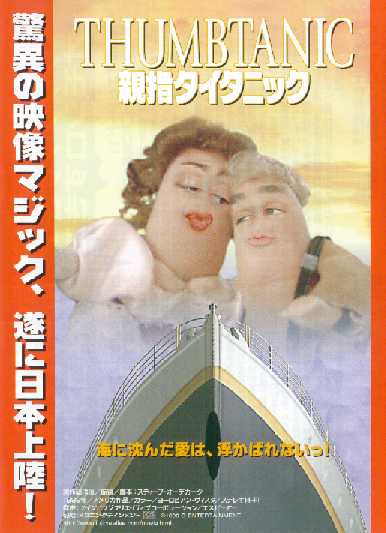 先日、単館系の映画を見に行きました。そこである気になる 映画を発見してしまいました。宣伝文句に 「全世界騒然!ルーカスもキャメロンも愕然!」「驚異の映像マジック、遂に日本上陸!」とあります。 そこで僕の見たものは!! ![]() 「THUMB WARS(親指スター・ウォーズ)」![]() 「THUMBTANIC(親指タイタニック)」でした・・・。 しかも結構お客さんが入っていました。 気になって気になって仕方がありません。 これに1300円をつぎ込んでいいものかどうなのか 自分の中で現在格闘中です。見たことある人感想待ってます。 |